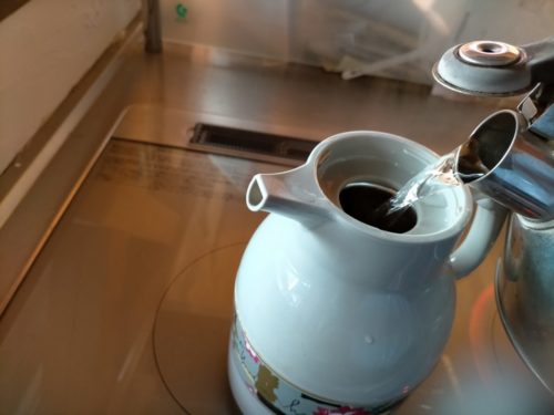このお茶の淹れ方は、いくつかありますがパッケージの後ろに記載の飲み方にある「作り置き」での淹れ方を試してみます。